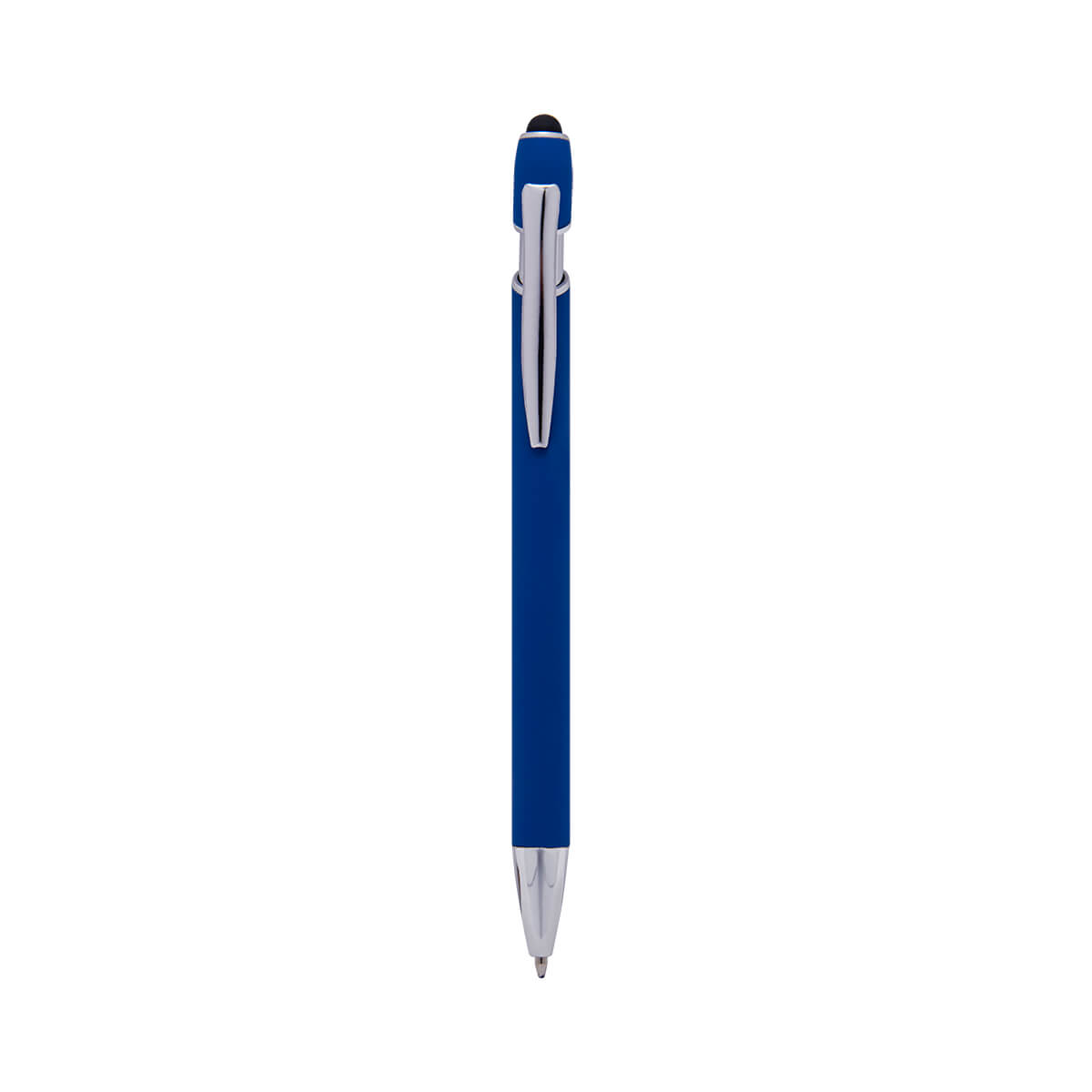 Boligrafo con touch screen y terminado tipo rubber. Mecanismo pulsador. Incluye funda.