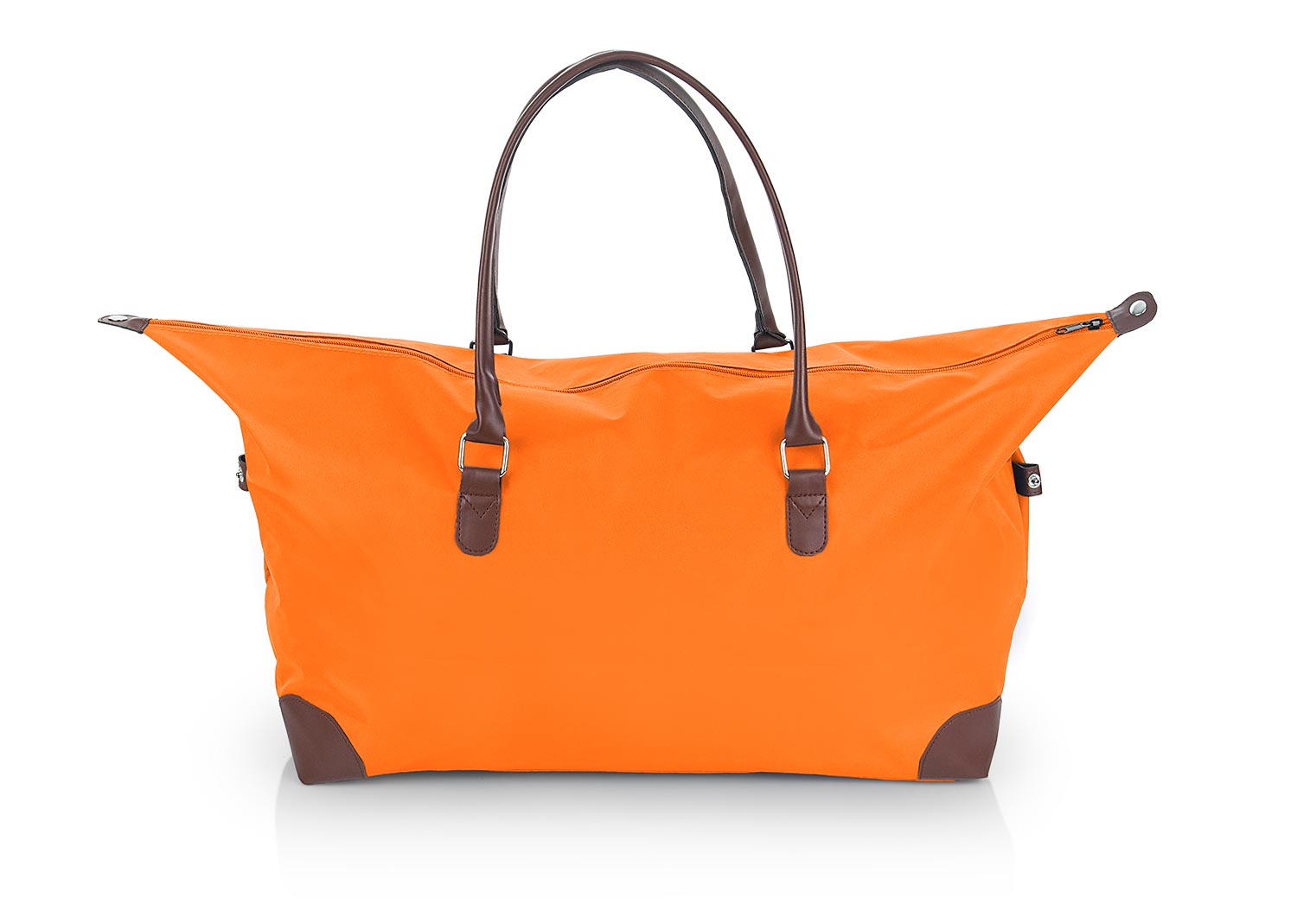 Bolso con agarraderas de mano imitación cuero, cierre en cremallera y ajuste lateral de broche.