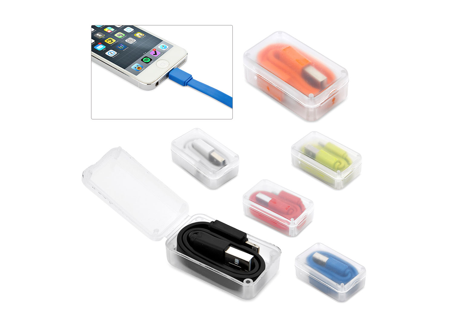 Cable de carga USB con entrada Lightning para Iphone. Permite ransferencia de datos. Incluye estuche para fácil almacenamiento.