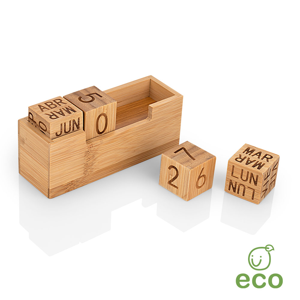 Calendario Perpetuo ecologico en Bambú, con piezas movibles para mostrar cualquier fecha,