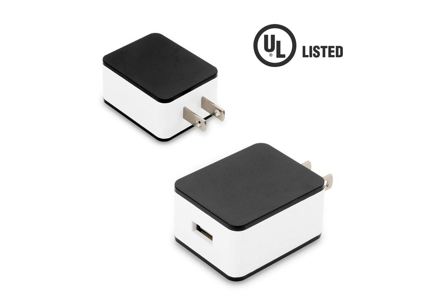 Cargador de pared con función de carga rapida 1 puerto USB, salida: 5V-2.4A, 9V-1.67A, 12V-1.3A, entrada 100-240V, 0,15A 50/60Hz. Cuenta con Certificado de Seguridad UL. (E361273)