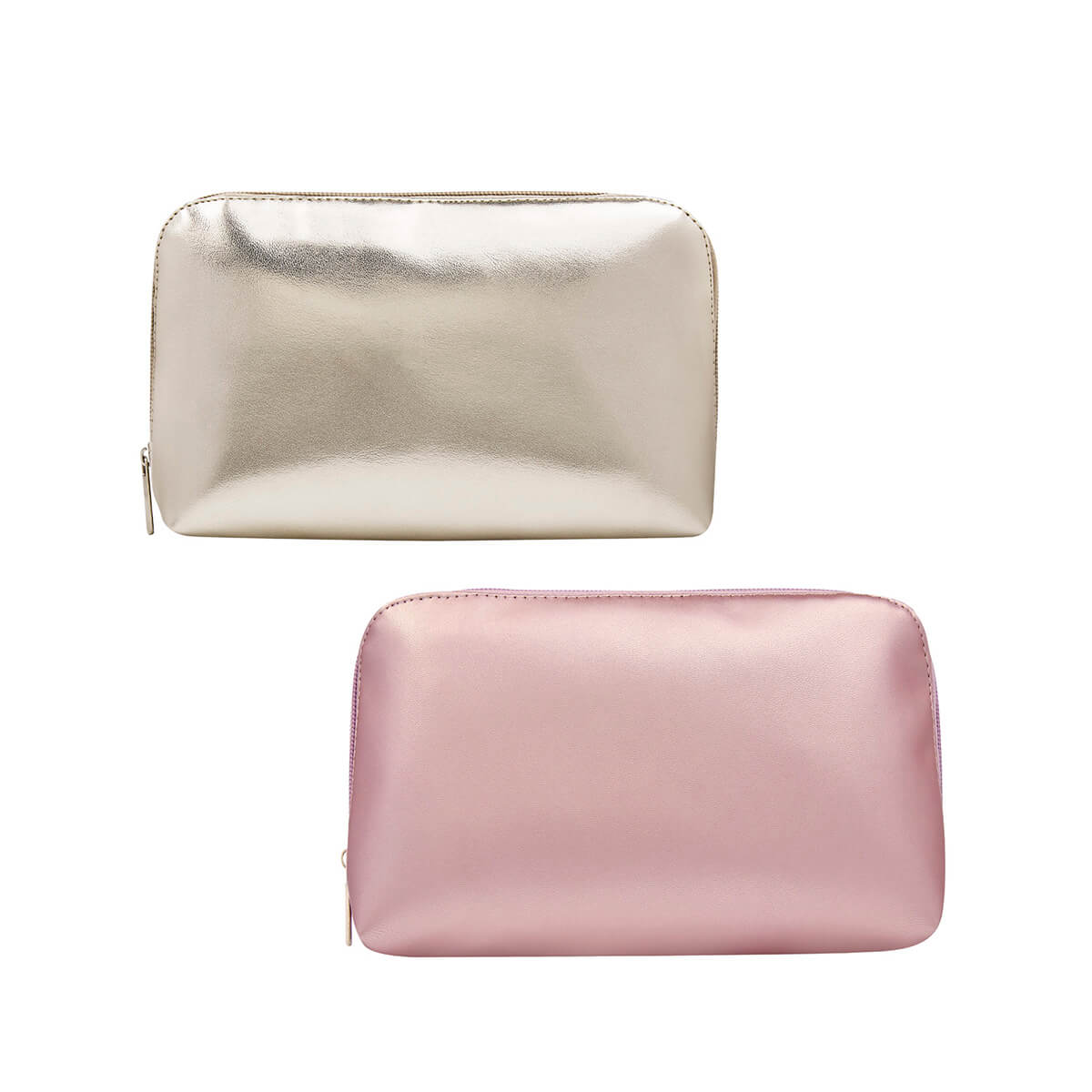 Cosmetiquera metalizada con fuelle. Compartimento principal con cierre.