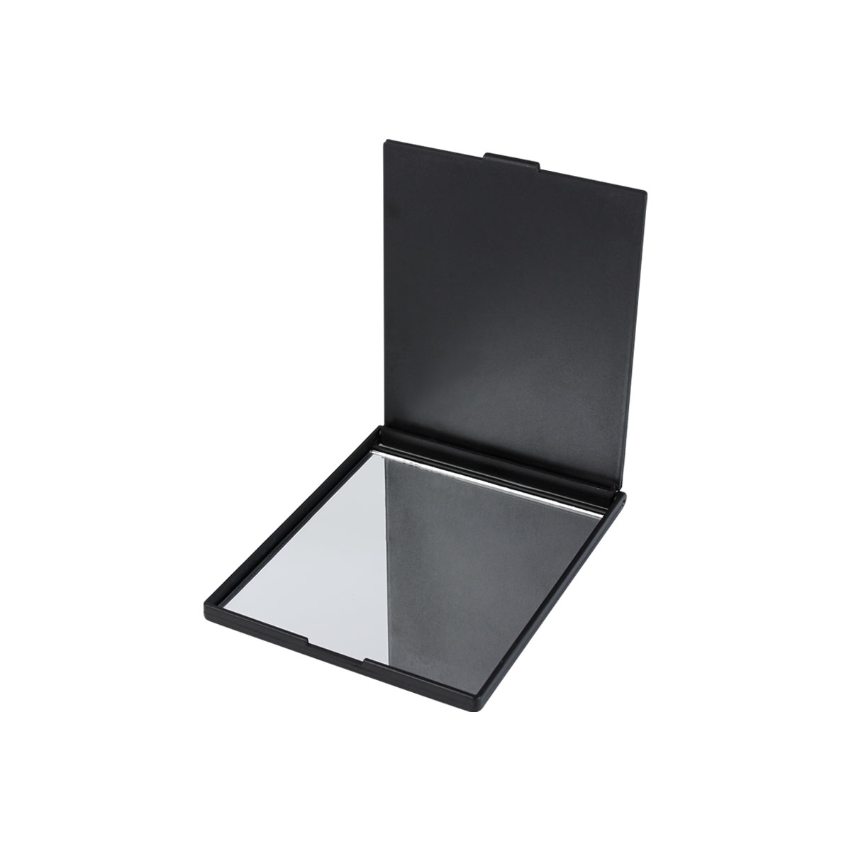 Espejo rectangular de bolsillo. La tapa sirve como base.