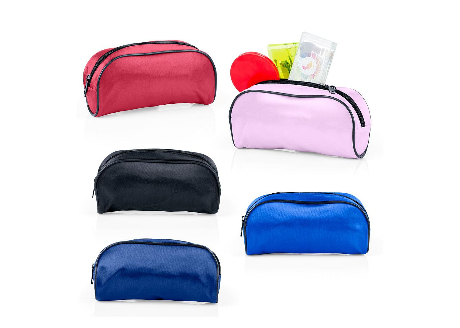 Estuche satinado con cremallera ideal para organizar el maquillaje y/o los productos de aseo personal.