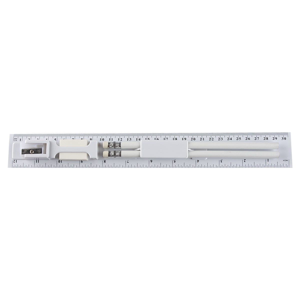 Incluye 2 lapices, 1 borrador, 1 sacapuntas y regla de 30 cm.