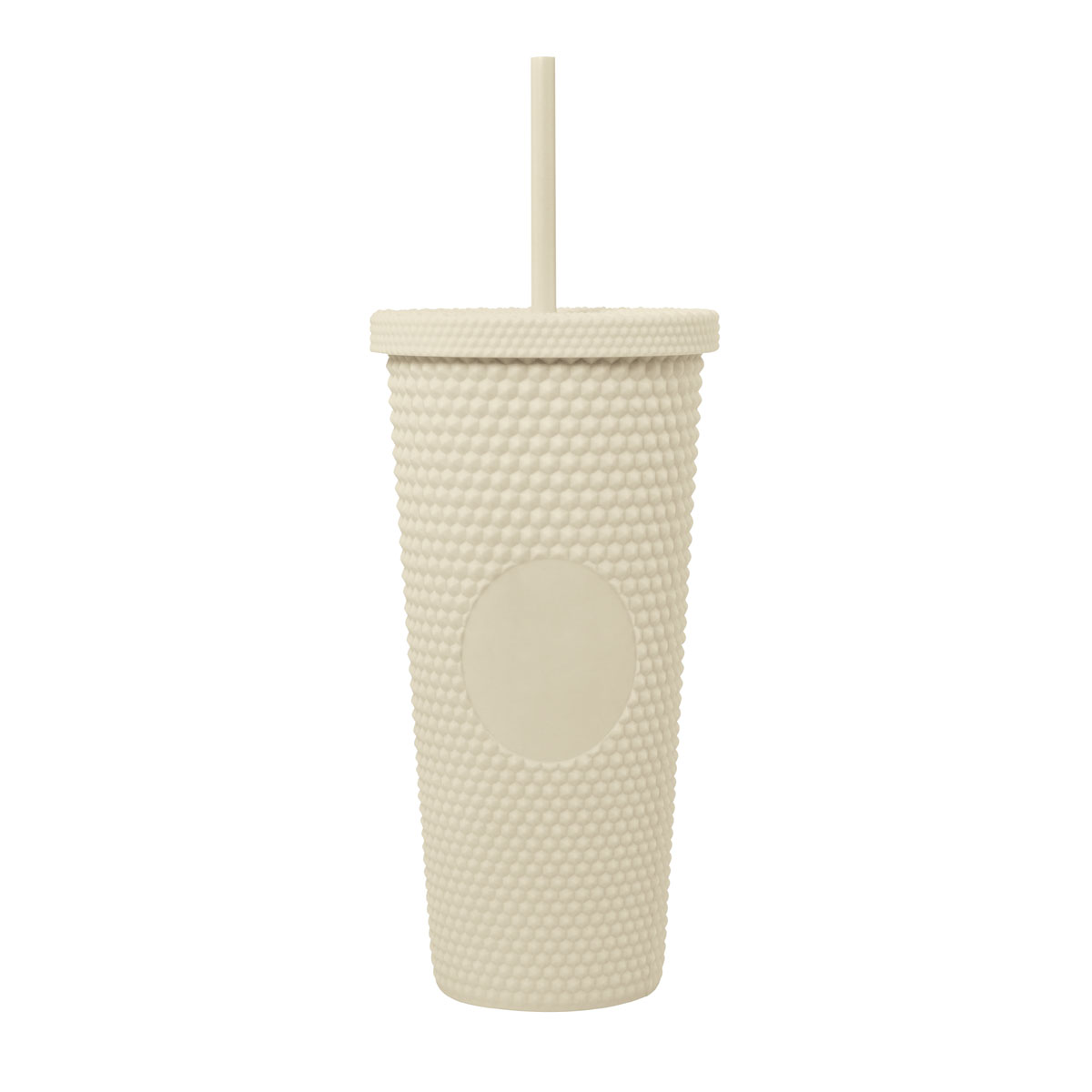 Doble pared. Pared interna y externa de plástico. Tapa de plástico con sistema de rosca. Incluye popote. Cuerpo y tapa con textura diamante y terminado tipo rubber. Capacidad 22 Oz. Base de 6.8 cm de diámetro. Caja individual incluida.